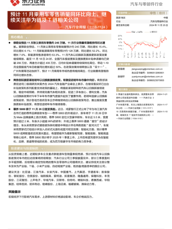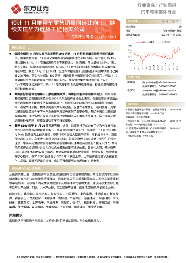 【东方证券】【20241125】2025年02月21日更新-【东方证券】汽车行业周报:预计11月乘用车零售销量同环比向上,继续关注华为链及T链相关公司-16页