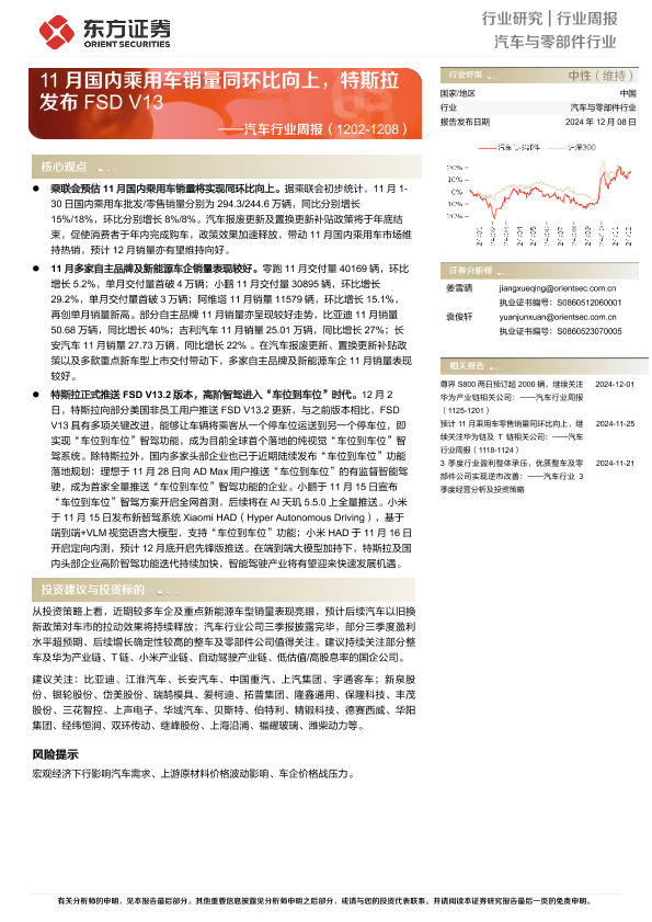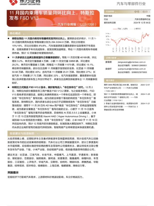 【东方证券】【20241208】2025年02月20日更新-【东方证券】汽车行业周报:11月国内乘用车销量同环比向上,特斯拉发布FSD V13-17页