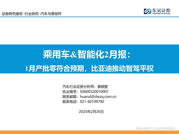 【东吴证券】【20250226】乘用车&智能化2月报:1月产批零符合预期,比亚迪推动智驾平权-41页