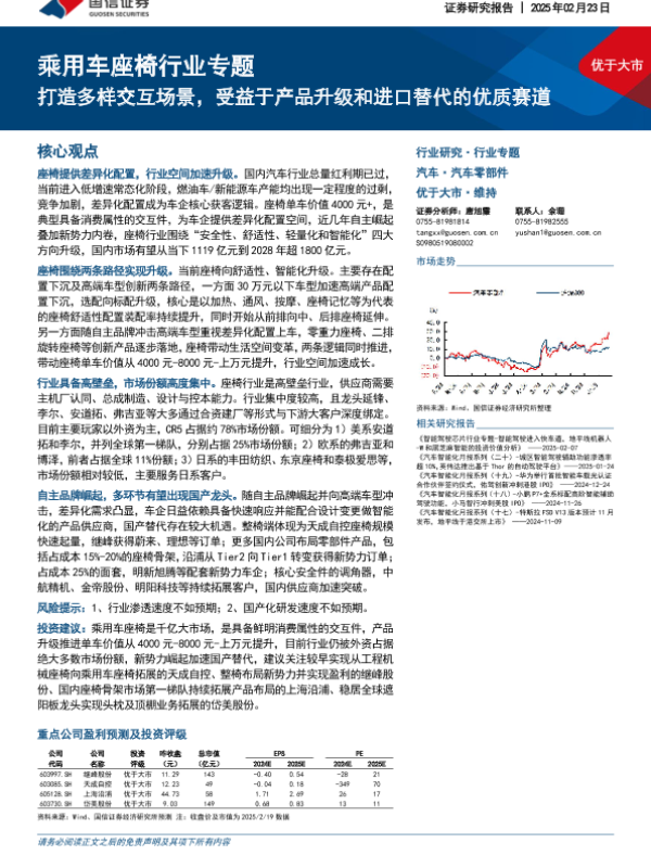 【国信证券】【20250223】2025年02月25日更新-乘用车座椅行业专题:造多样交互场景,受益于产品升级和进口替代的优质赛道-62页