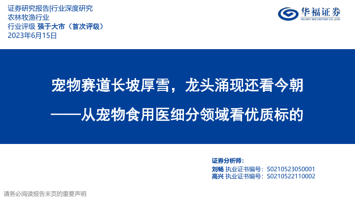 【华福证券】【20230615】农林牧渔行业深度研究-从宠物食用医细分领域看优质标的-宠物赛道长坡厚雪-龙头涌现还看今朝-50页