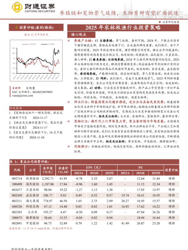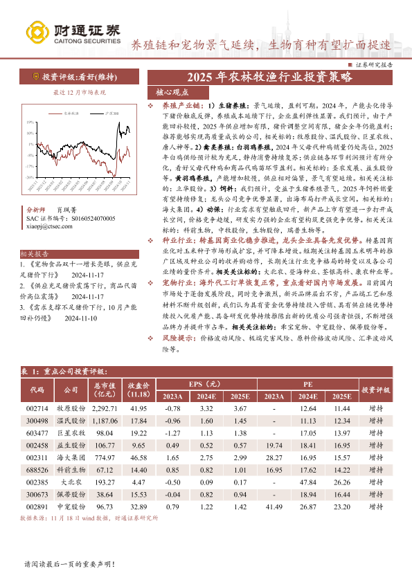 【财通证券】【20241127】2025年农林牧渔行业投资策略:养殖链和宠物景气延续,生物育种有望扩面提速-28页