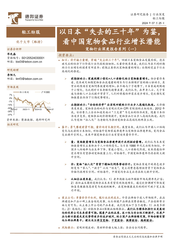 【德邦证券】【20240725】2024年12月29日更新-【德邦证券】宠物行业深度报告系列(一):以日本“失去的三十年”为鉴,看中国宠物食品行业增长潜能-20页