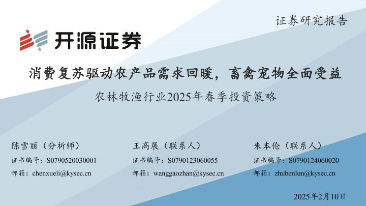 【开源证券】【20250213】农林牧渔行业2025年春季投资策略:消费复苏驱动农产品需求回暖,畜禽宠物全面受益-51页