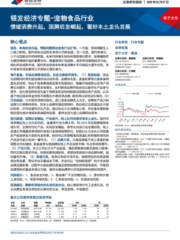 【国信证券】【20250327】银发经济专题~宠物食品行业:情绪消费兴起国牌后发崛起看好本土龙头发展-33页