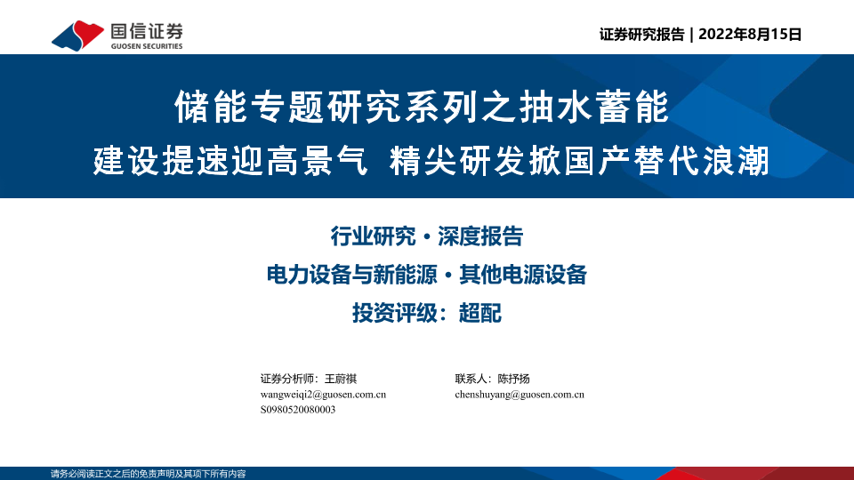 【国信证券】【20220815】储能专题研究系列之抽水蓄能:建设提速迎高景气,精尖研发掀国产替代浪潮-43页