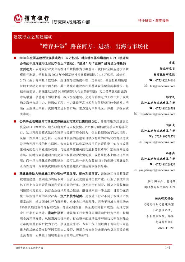 【招商银行】【20230826】建筑行业之基建篇④——“增存并举”路在何方:进城、出海与市场化-36页