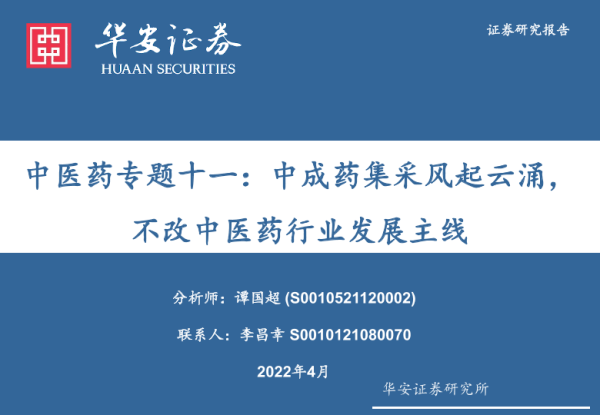 【华安证券】【20220410】中医药行业专题十一:中成药集采风起云涌,不改中医药行业发展主线-32页