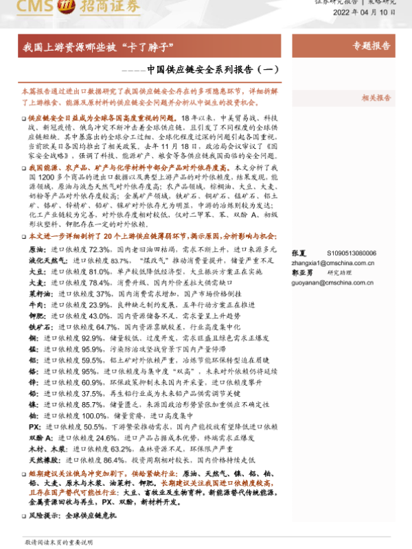 【海通证券】【20220410】中国供应链安全系列报告(一):我国上游资源哪些被“卡了脖子”-56页