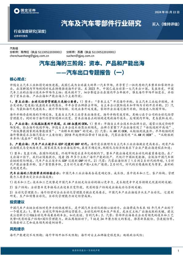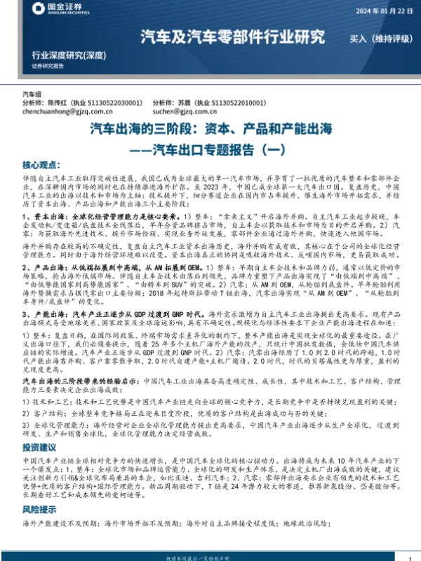 【国金证券】【20240124】2024年01月24日更新-【国金证券】汽车出口专题报告(一)-汽车出海的三阶段-资本、产品和产能出海-63页