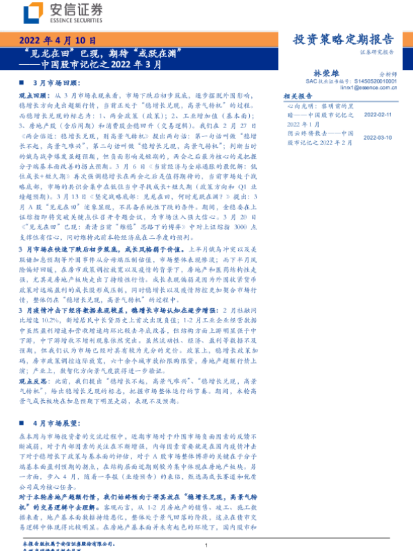 【安信证券】【20220410】中国股市记忆之2022年3月:“见龙在田”已现,期待“或跃在渊”-37页