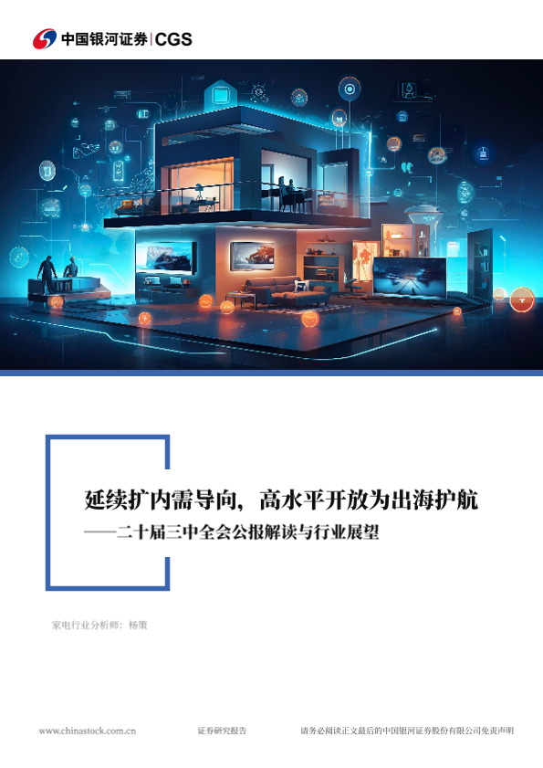 【银河证券】【20240726】2024年07月26日更新-【中国银河】家电行业行业深度报告-二十届三中全会公报解读与行业展望-延续扩内需导向-高水平开放为出海护航-20页