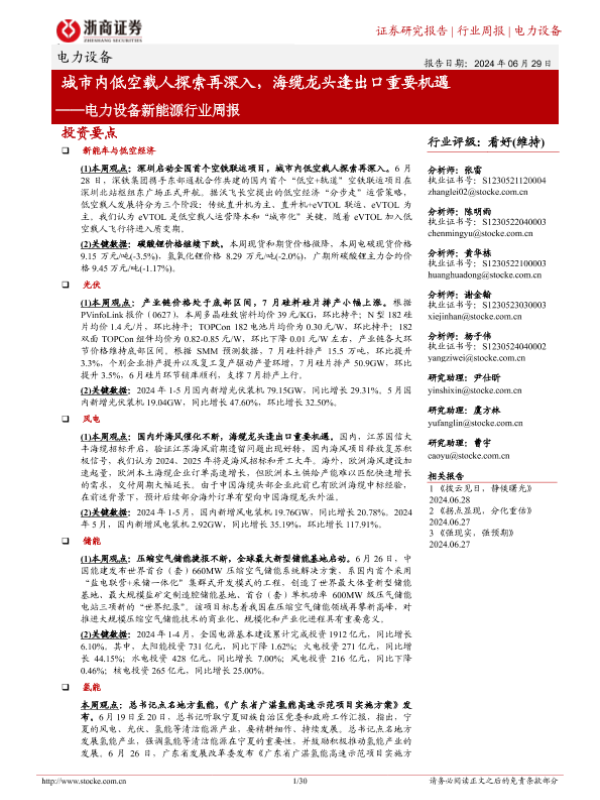 【浙商证券】【20240629】城市内低空载人探索再深入,海缆龙头逢出口重要机遇-30页