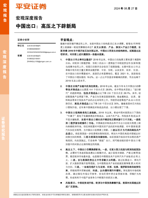 【平安证券】【20240827】中国出口高压之下辟新局-22页