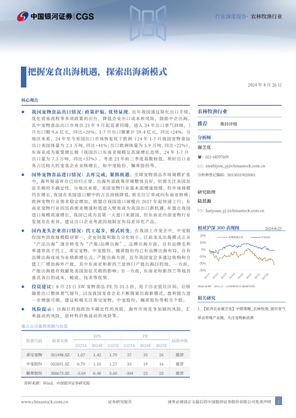 【银河证券】【20240829】2024年08月29日更新-【中国银河】农林牧渔行业行业深度报告-把握宠食出海机遇-探索出海新模式-26页