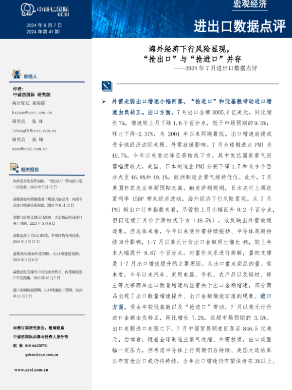【中诚信国际】【20240901】2024年09月01日更新-海外经济下行风险显现,抢出口与抢进口并存-6页