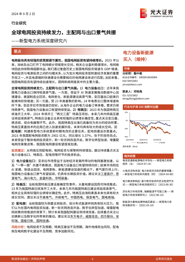 【光大证券】【20240902】2024年09月03日更新-电力设备新能源行业新型电力系统深度研究六:全球电网投资持续发力主配网与出口景气共振-38页