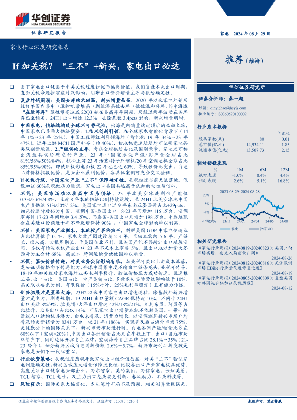 【华创证券】【20240829】2024年09月06日更新-【华创证券】家电行业深度研究报告:If加关税?“三不”%2b新兴,家电出口必达-240829-41页
