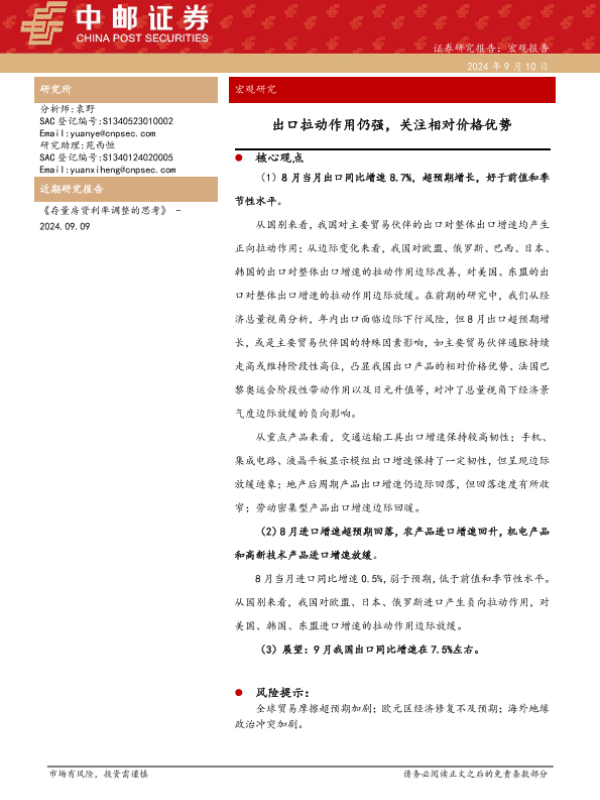 【中邮证券】【20240910】2024年09月10日更新-【中邮证券】宏观研究:出口拉动作用仍强,关注相对价格优势-14页