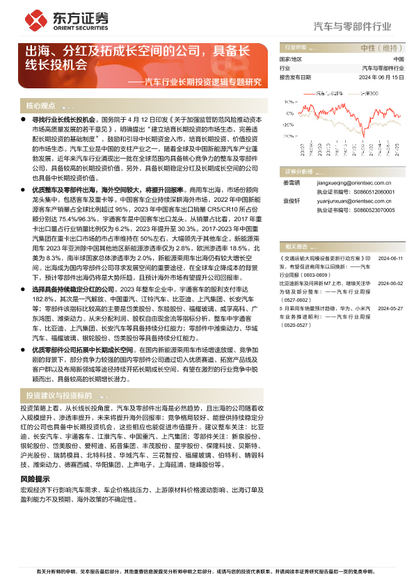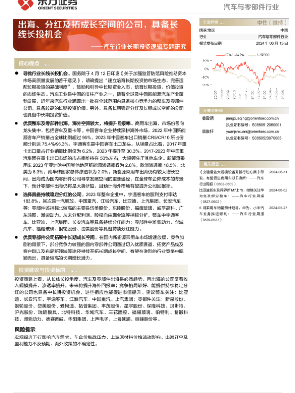 【东方证券】【20240615】2024年09月27日更新-【东方证券】汽车行业长期投资逻辑专题研究:出海、分红及拓成长空间的公司,具备长线长投机会-40页