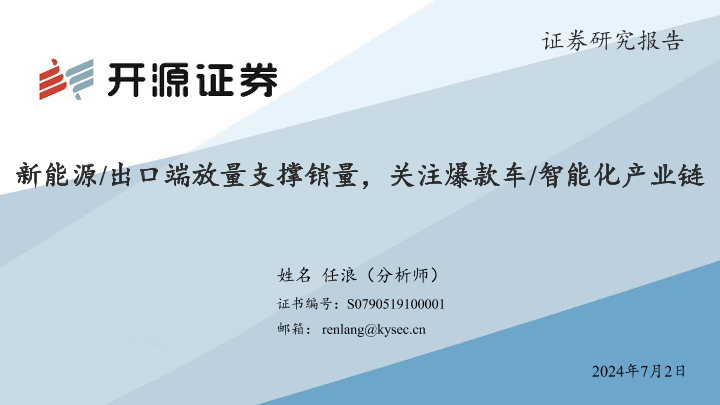【开源证券】【20240930】新能源:出口端放量支撑销量,关注爆款车:智能化产业链-30页