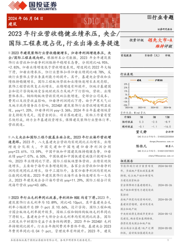 【国投证券】【20241004】2024年10月04日更新-【国投证券】建筑行业专题:2023年行业营收稳健业绩承压,央企国际工程表现占优,行业出海业务提速-33页