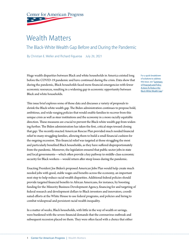 【Center for American Progress】【20210728】财富问题:流感大流行前后的黑白贫富差距-19页