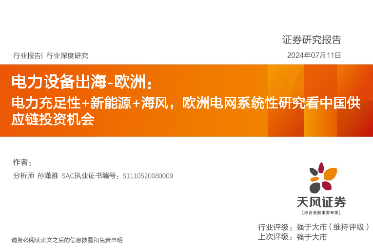 【天风证券】【20241016】电力设备出海-欧洲:电力充足性+新能源+海风,欧洲电网系统性研究看中国供应链投资机会-36页