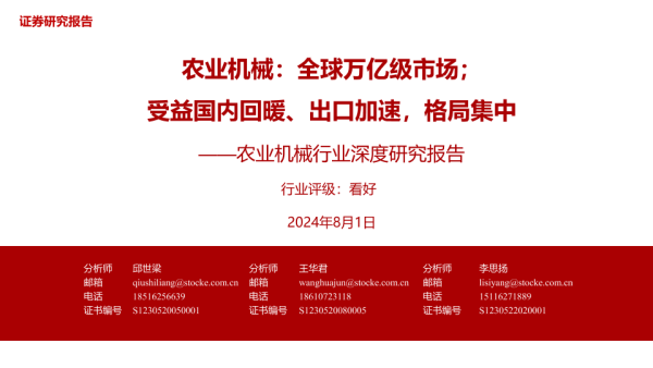 【浙商证券】【20241020】2024年10月20日更新-农业机械行业深度研究报告:农业机械全球万亿级市场;受益国内回暖、出口加速格局集中-45页