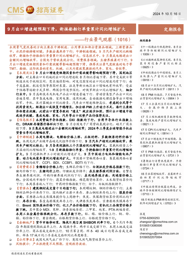 【海通证券】【20241027】2024年10月27日更新-【招商证券】行业景气观察(1016):9月出口增速超预期下滑,新接船舶订单量累计同比增幅扩大-36页