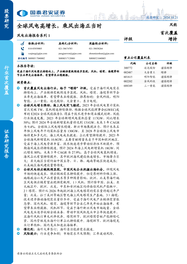 【国泰君安证券】【20241021】全球风电高增长乘风出海正当时-24页