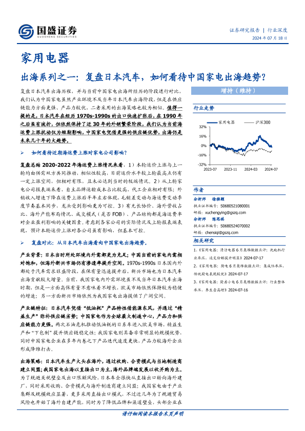 【国盛证券】【20240718】家用电器行业出海系列之一:复盘日本汽车如何看待中国家电出海趋势-31页