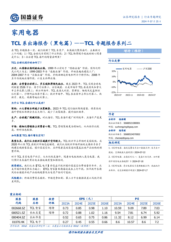 【国盛证券】【20240725】2024年11月06日更新-家用电器行业TCL专题报告系列二:TCL系出海报告(黑电篇)-17页