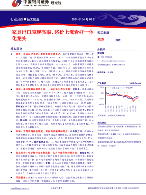 包装材料 家具出口 政策导向 浆价上涨 轻工制造