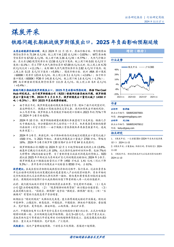 【国盛证券】【20241129】煤炭开采行业研究简报:铁路问题长期挑战俄罗斯煤炭出口,2025年负面影响预期延续-12页
