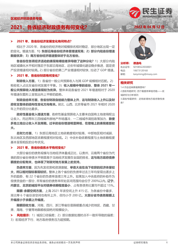【民生证券】【20220412】区域经济财政债务专题:2021,各省经济财政债务有何变化?-27页
