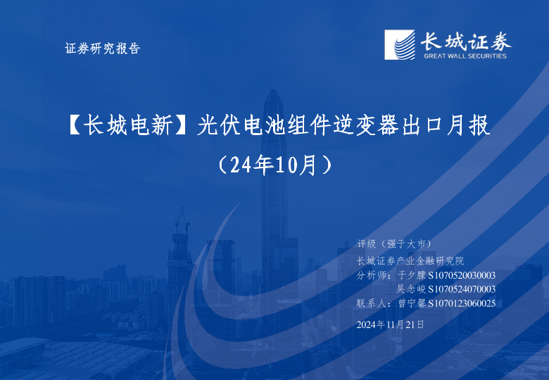 【长城证券】【202410】光伏电池组件逆变器出口月报(24年10月)-17页