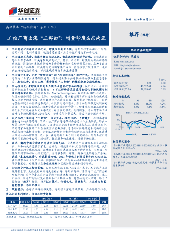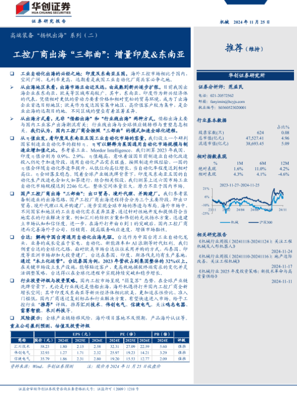 【华创证券】【20241206】机械行业高端装备“扬帆出海”系列(二):工控厂商出海“三部曲”,增量印度&东南亚-31页