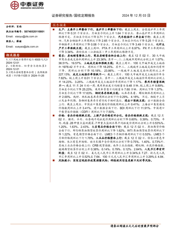 【中泰证券】【20241203】2024年12月12日更新-【中泰证券】高频数据观察:“抢出口”效应持续-10页
