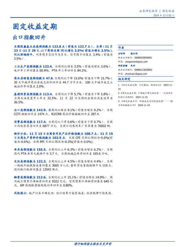 【国盛证券】【20241212】2024年12月12日更新-【国盛证券】固定收益定期:出口指数回升-20页