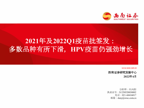 【西南证券】【20220412】医药行业2021年及2022Q1疫苗批签发:多数品种有所下滑,HPV疫苗仍强劲增长-64页