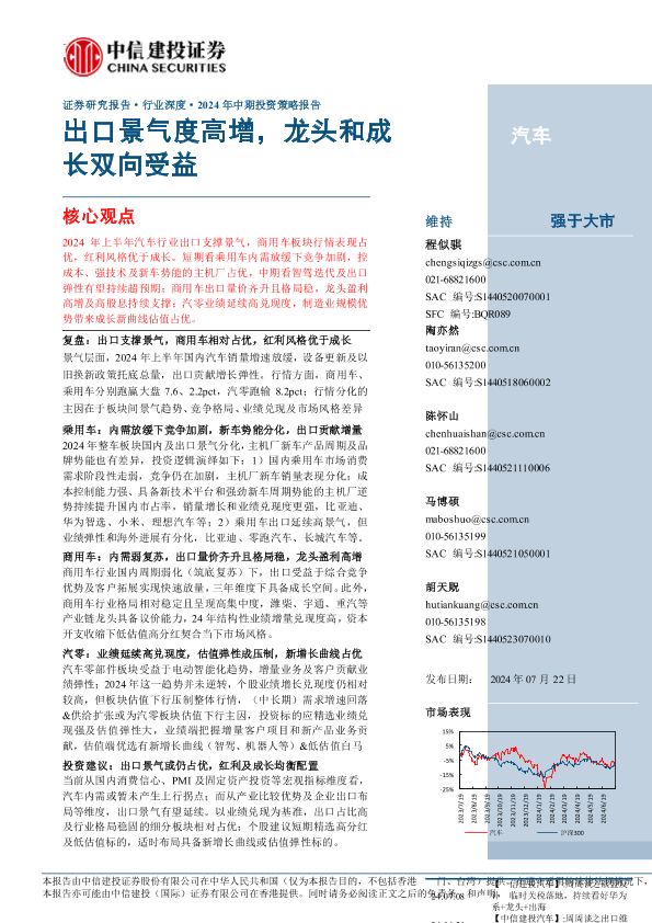 乘用车 出口景气 商用车 汽车行业 零部件