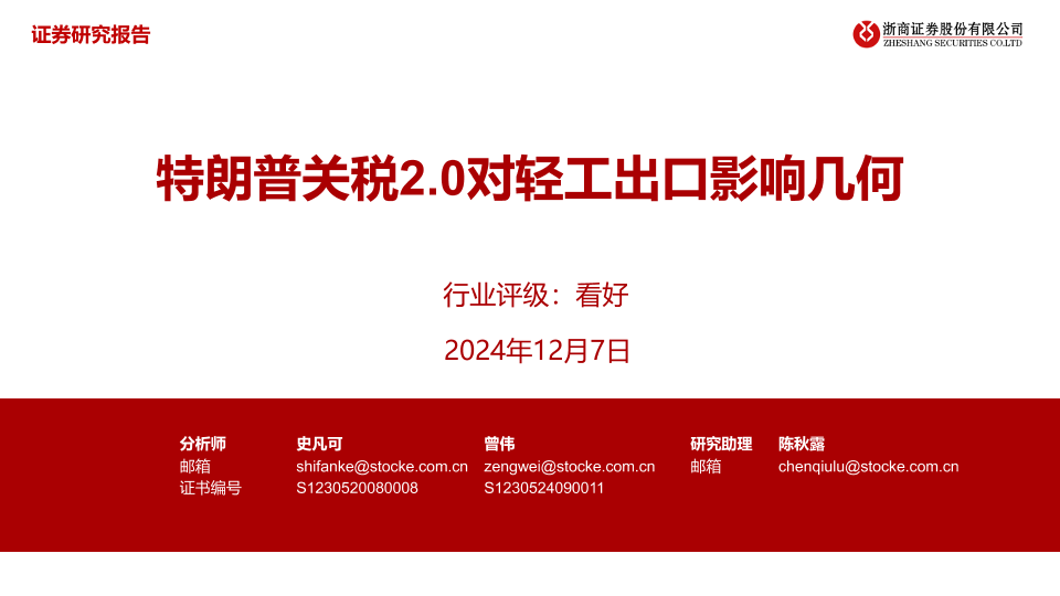 【浙商证券】【20241207】特朗普关税2.0对轻工出口影响几何-32页