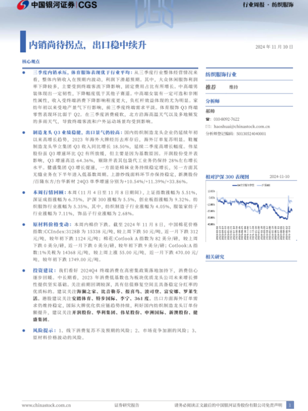 【银河证券】【20241220】纺织服饰:内销尚待拐点,出口稳中续升-29页