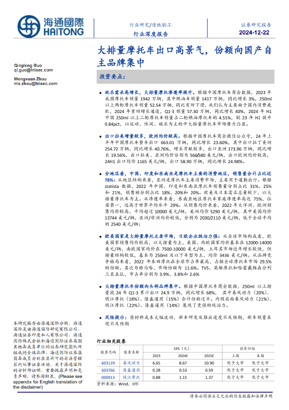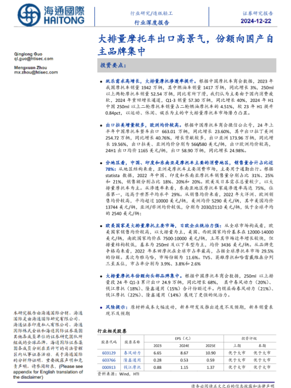 【海通国际】【20241220】大排量摩托车出口高景气,份额向国产自主品牌集中-27页