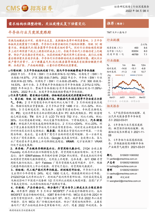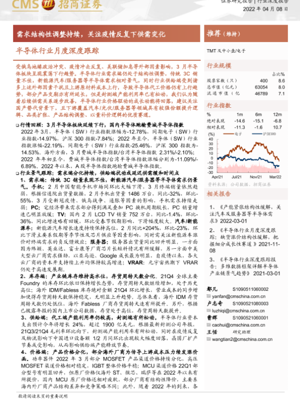 【海通证券】【20220408】半导体行业月度深度跟踪:需求结构性调整持续,关注疫情反复下供需变化-62页