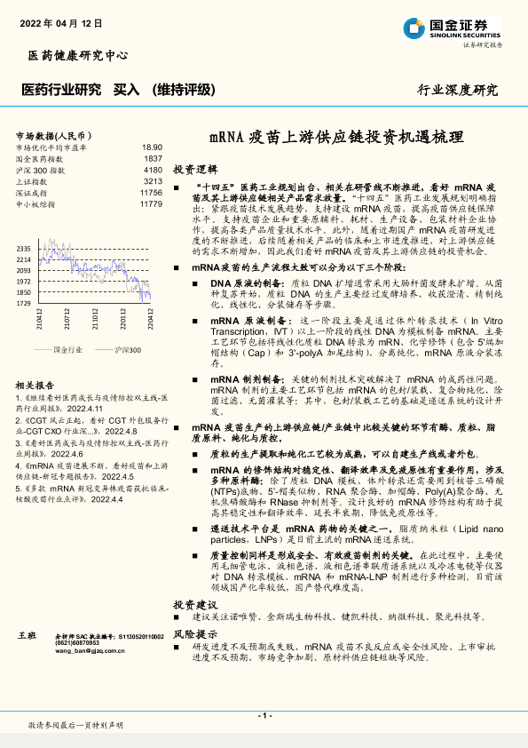【国金证券】【20220412】医药行业深度研究:mRNA疫苗上游供应链投资机遇梳理-21页
