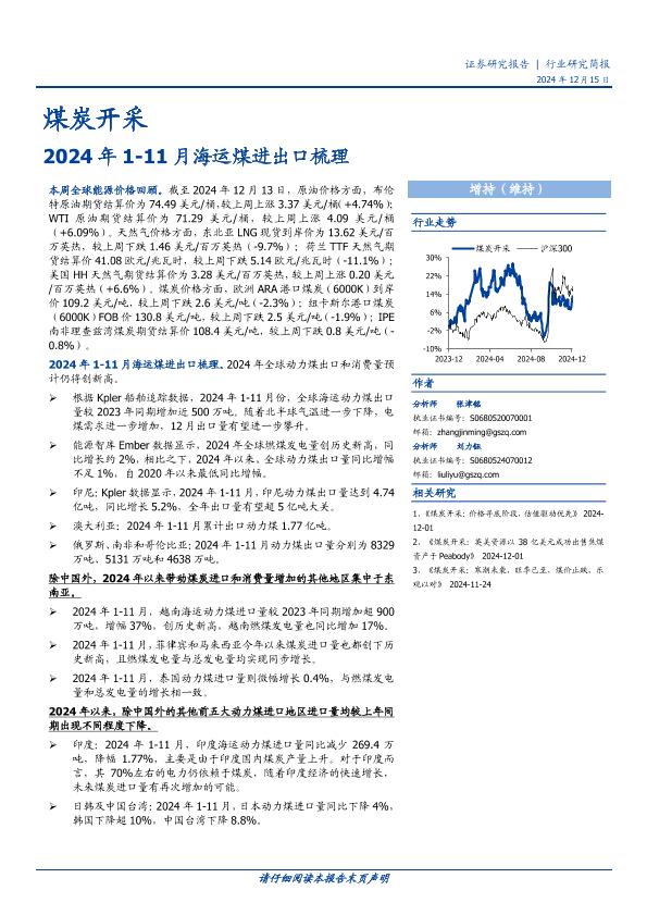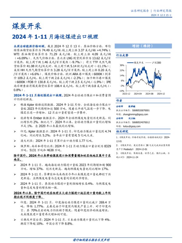 【国盛证券】【20241229】2024年1-11月海运煤进出口梳理-12页
