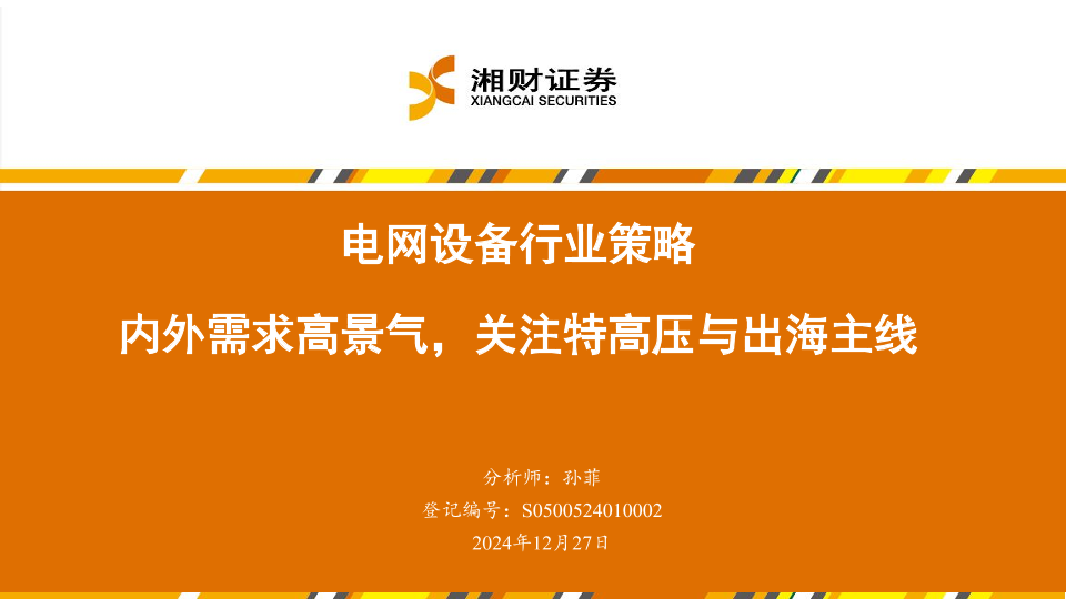 【湘财证券】【20241227】2024年12月29日更新-电网设备行业策略:内外需求高景气关注特高压与出海主线-38页