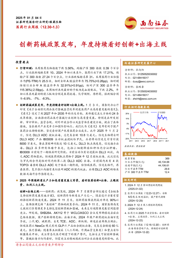 【西南证券】【20250109】2025年01月09日更新-【西南证券】创新药械政策发布,年度持续看好创新+出海主线-33页